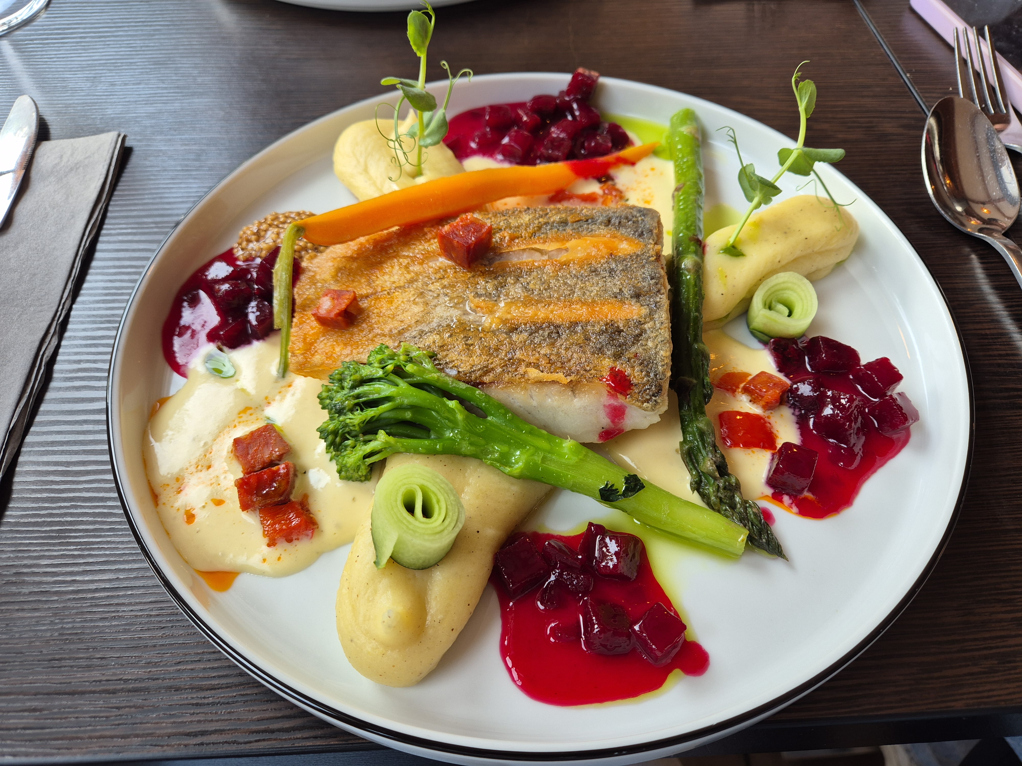 Filet vom Zander gebraten mit sauertiertem Gemüse