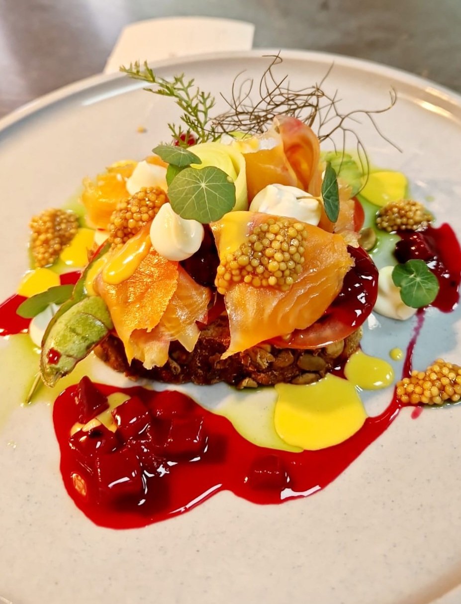 Warmer Senfschaum | Kartoffel-Püree | Rote Beete Relish | Senfkaviar