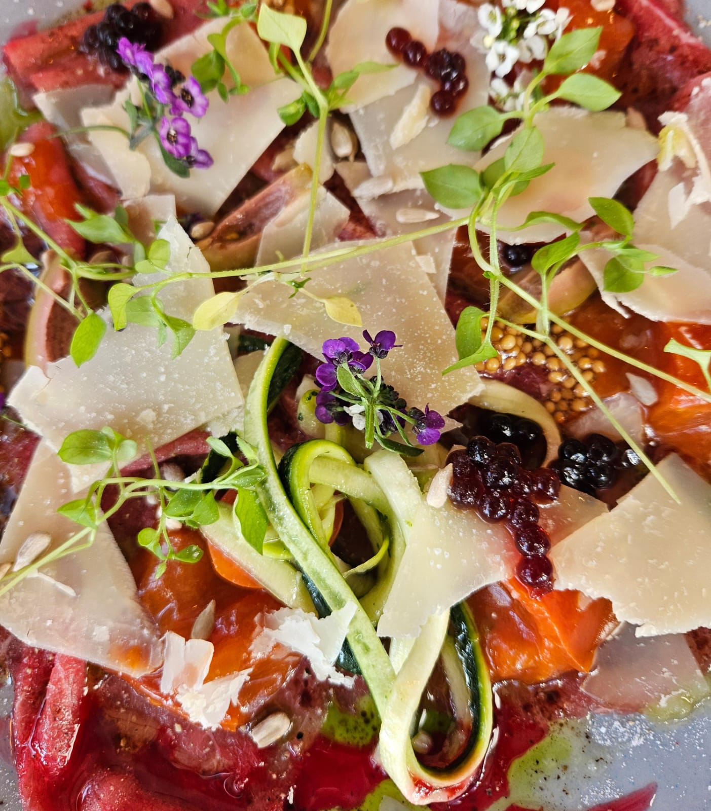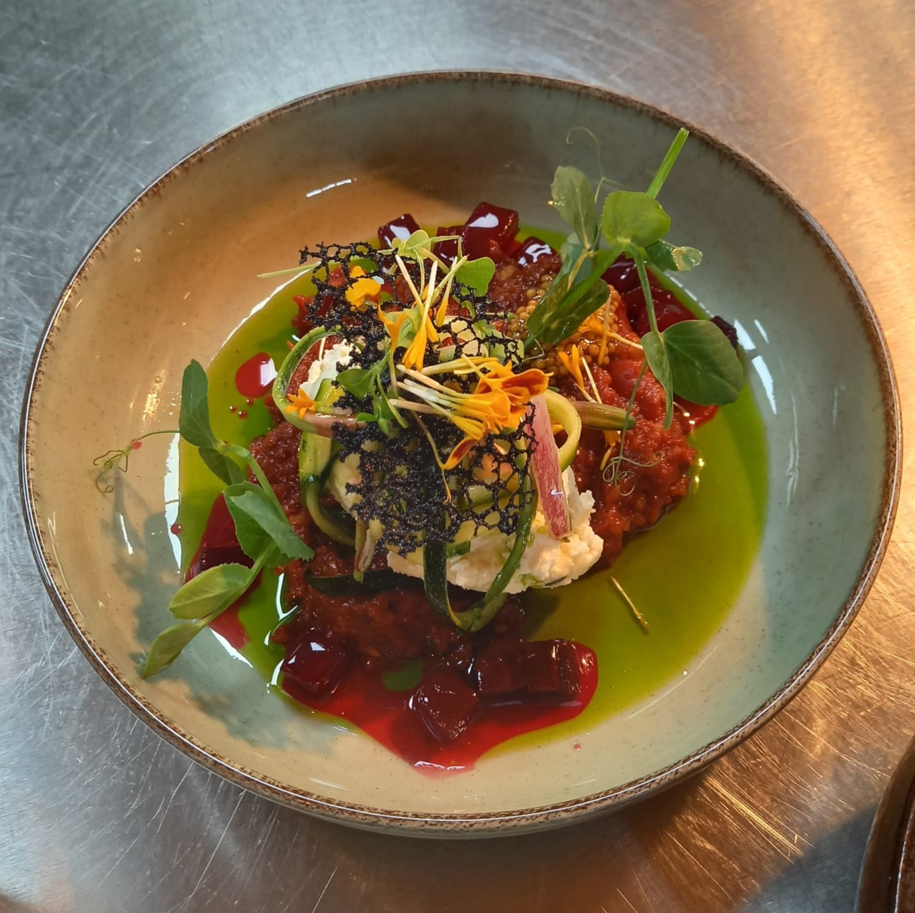marinierter Salat | Röstkartoffeln | Strandläuferremoulade | Rote Bete