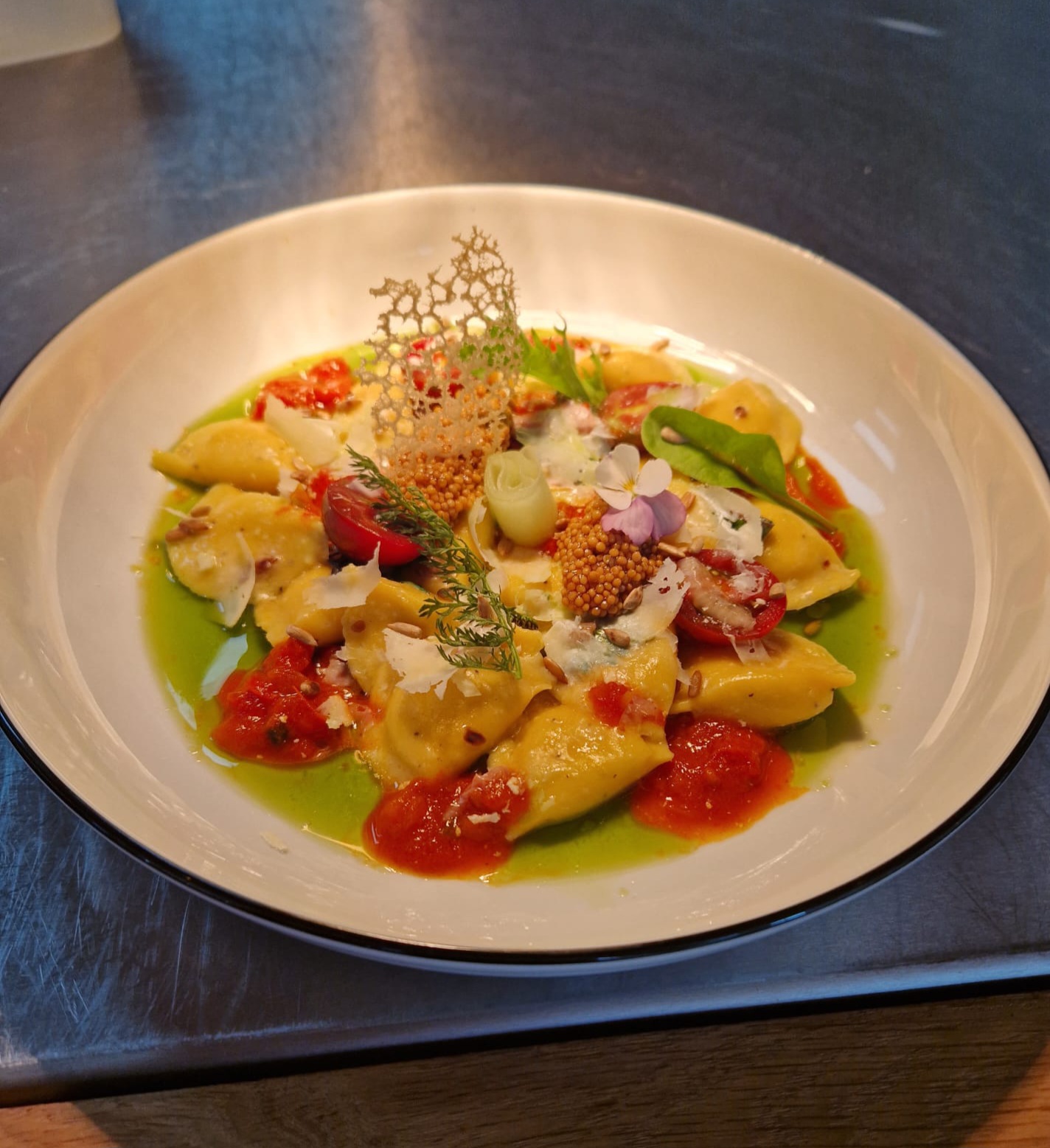 Frischkäse Ravioli | Zitronen-Butterschaum | Jus | Tomaten-Relish